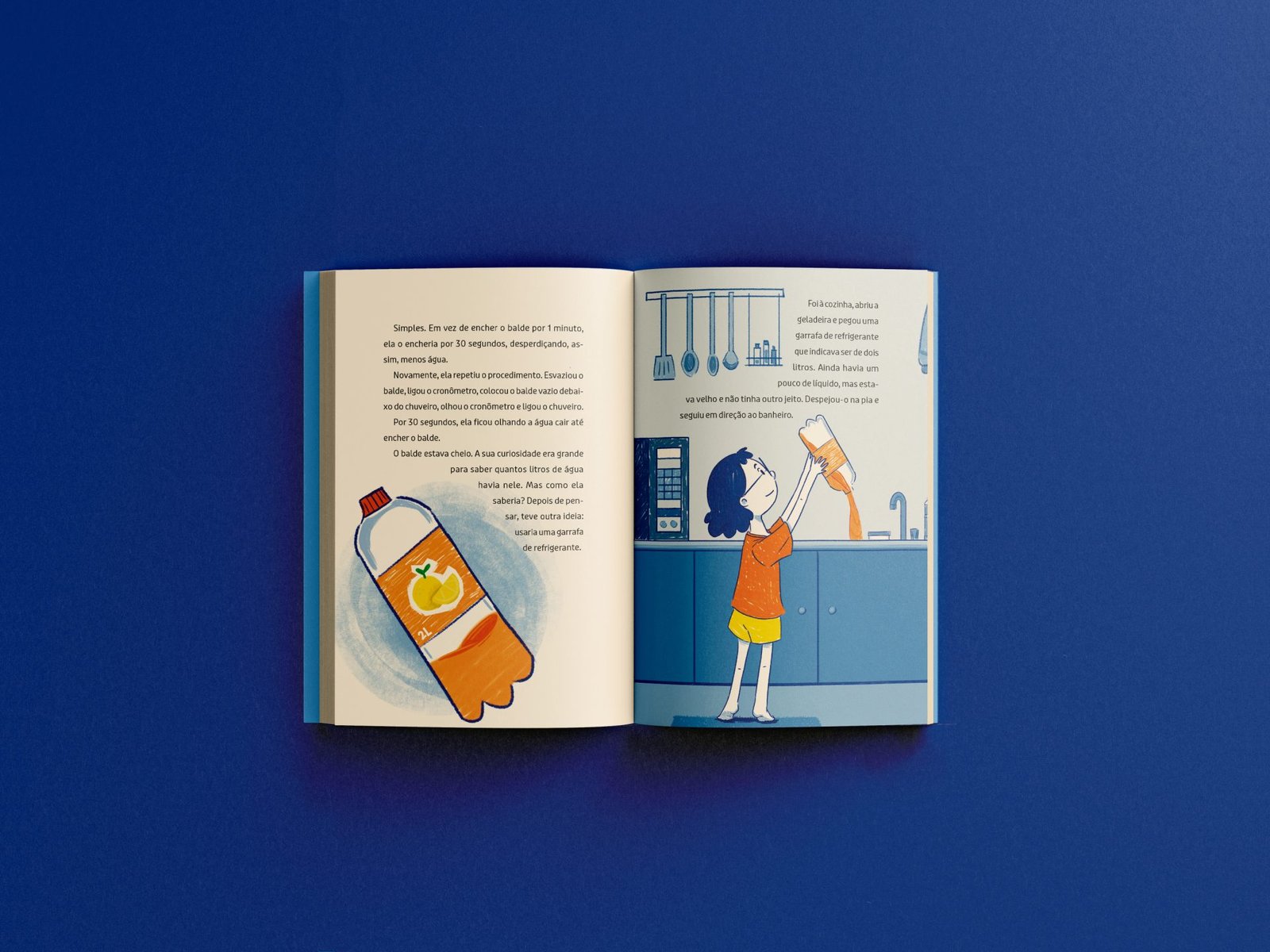 What do you think about when you’re taking a shower? Do you sing in the shower? How long are your showers: 5, 10, or 30 minutes? For Bia, each drop hitting her body sparks her mind to reflect on the very act of showering. How much water is consumed every second, minute, or hour in each shower? How much water is used in her family’s showers? And the families living in her building, her neighborhood, or her city—how much do they consume? Bia’s mind never stops searching for answers. One question’s answer leads to another, and another. The more she calculated and expanded to more families, neighborhoods, and cities, the more her curiosity and astonishment grew, faced with striking numbers and a city of showers. A rainfall of showers.