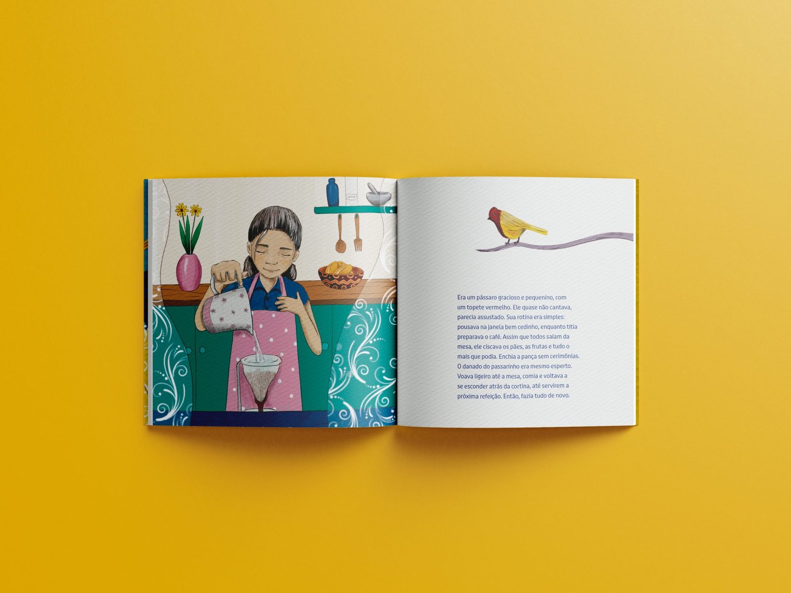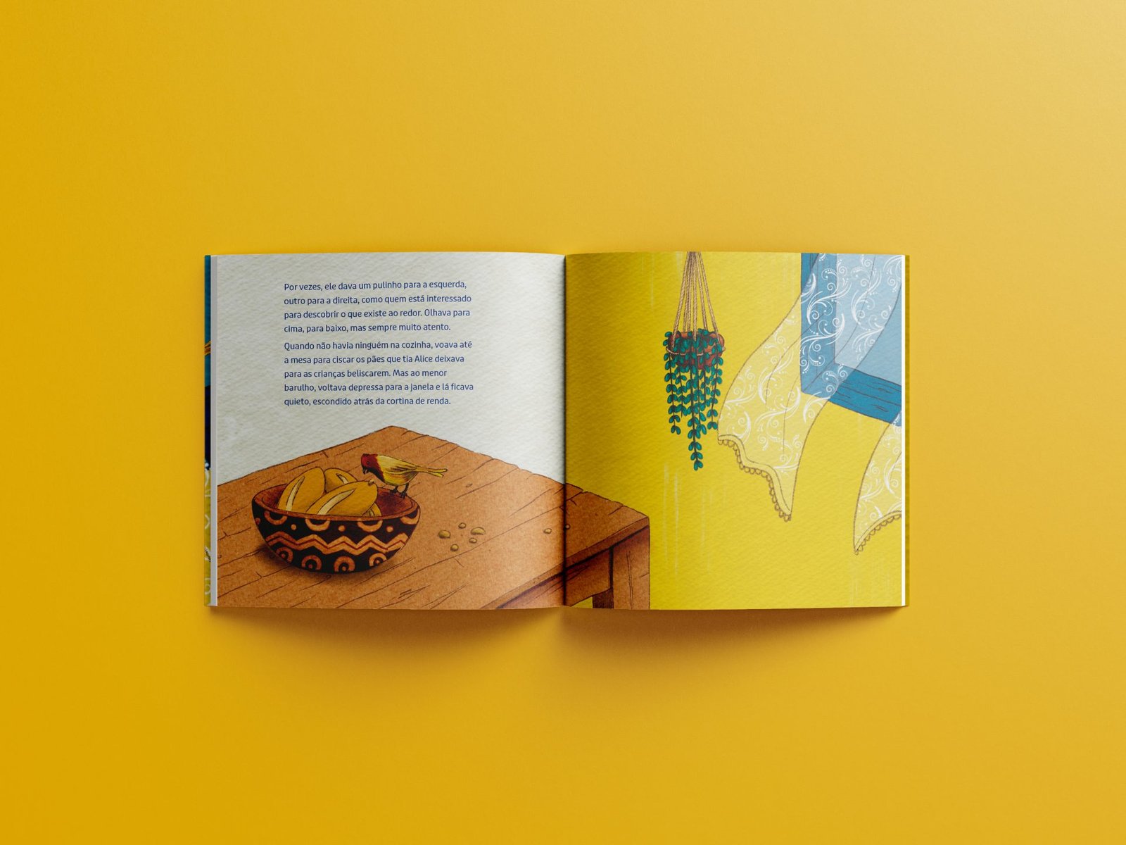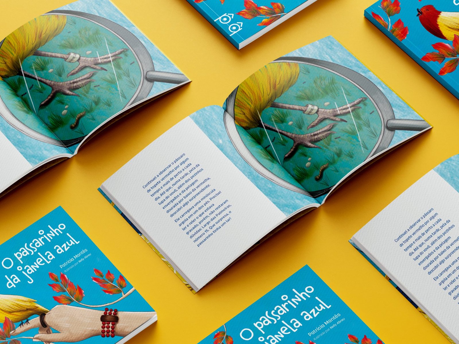 Where could he have come from? Why did he choose that window to land on? A shy little bird was the house’s new visitor. When no one was in the kitchen, he flew from the window to the table, pecking at the bread baked by aunt Alice. But at the slightest noise, he hid behind the lace curtain. The Short Story “O passarinho da janela azul” tells the story of a small bird who flees his home and finds refuge on the blue window of another house. The narrator, intrigued by his presence, begins to observe him. Her curiosity and imagination lead her on an adventure to uncover the story of the tiny bird from the blue window.
